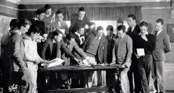 Los alumnos de Delta Kappa Epsilon en Dartmouth trabajando duro en una petición de la Universidad de Kansas: elegir a miss Kansas 1930, visto su "amplio conocimiento de la belleza femenina".